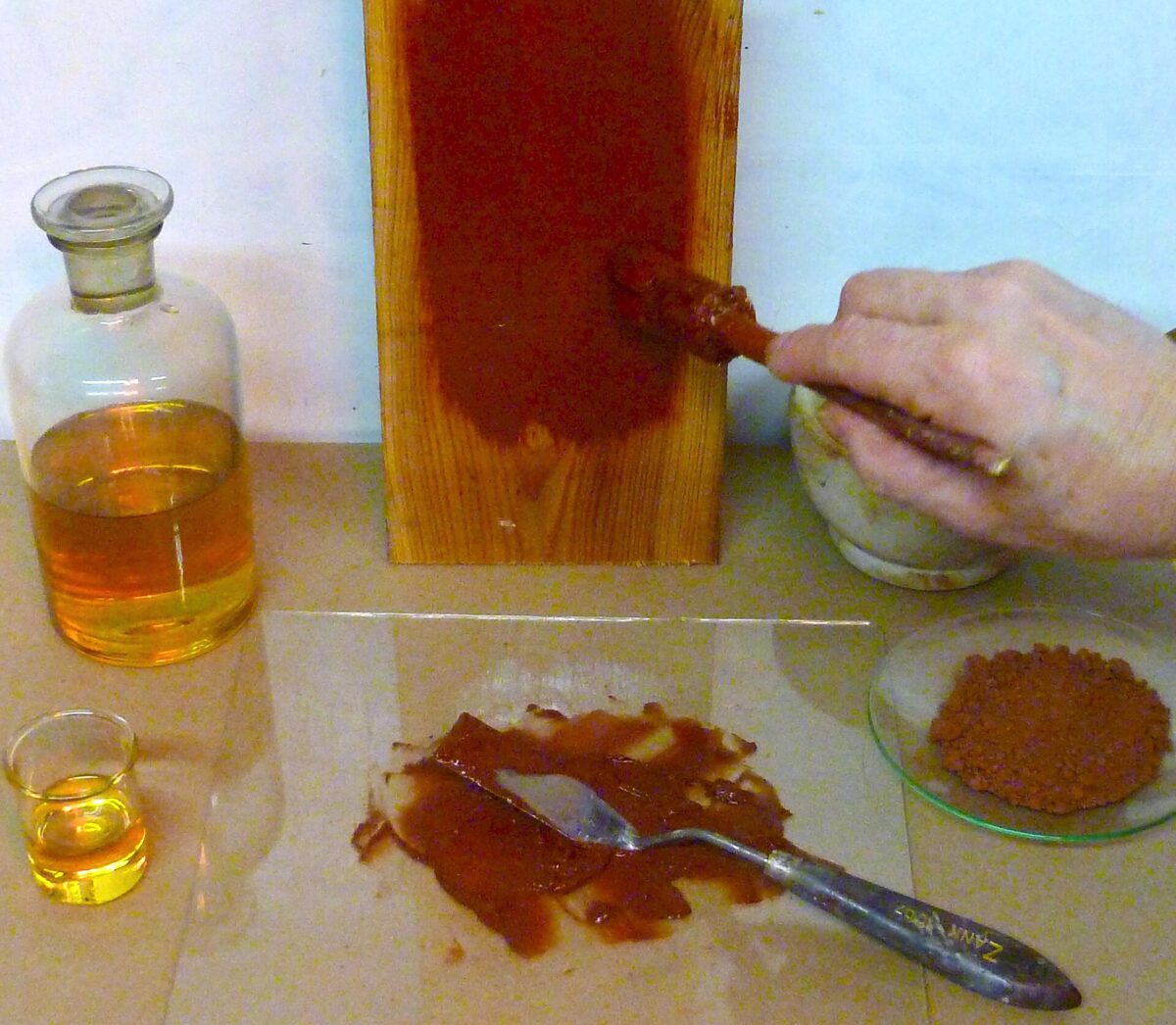 À noter : si vous travaillez avec des tubes du commerce, l’huile déjà présente dans la couleur doit être prise en compte. Certaines teintes sortent du tube plus grasses que d’autres.